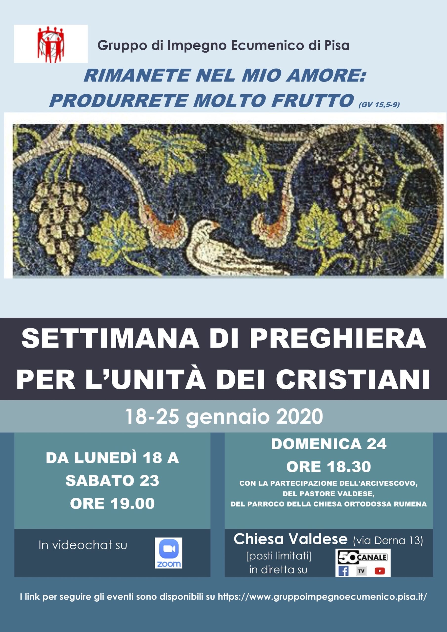 Invitiamo tutti a unirsi alla preghiera ecumenica del 24 gennaio alle 18.00 che sarà trasmessa in diretta da Canale50.