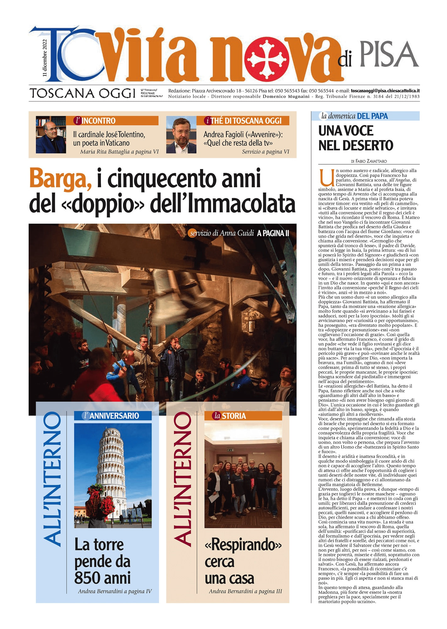 È in uscita il numero di Toscana Oggi datato domenica 11 dicembre. Qui trovate la prima pagina del dorso diocesano.
