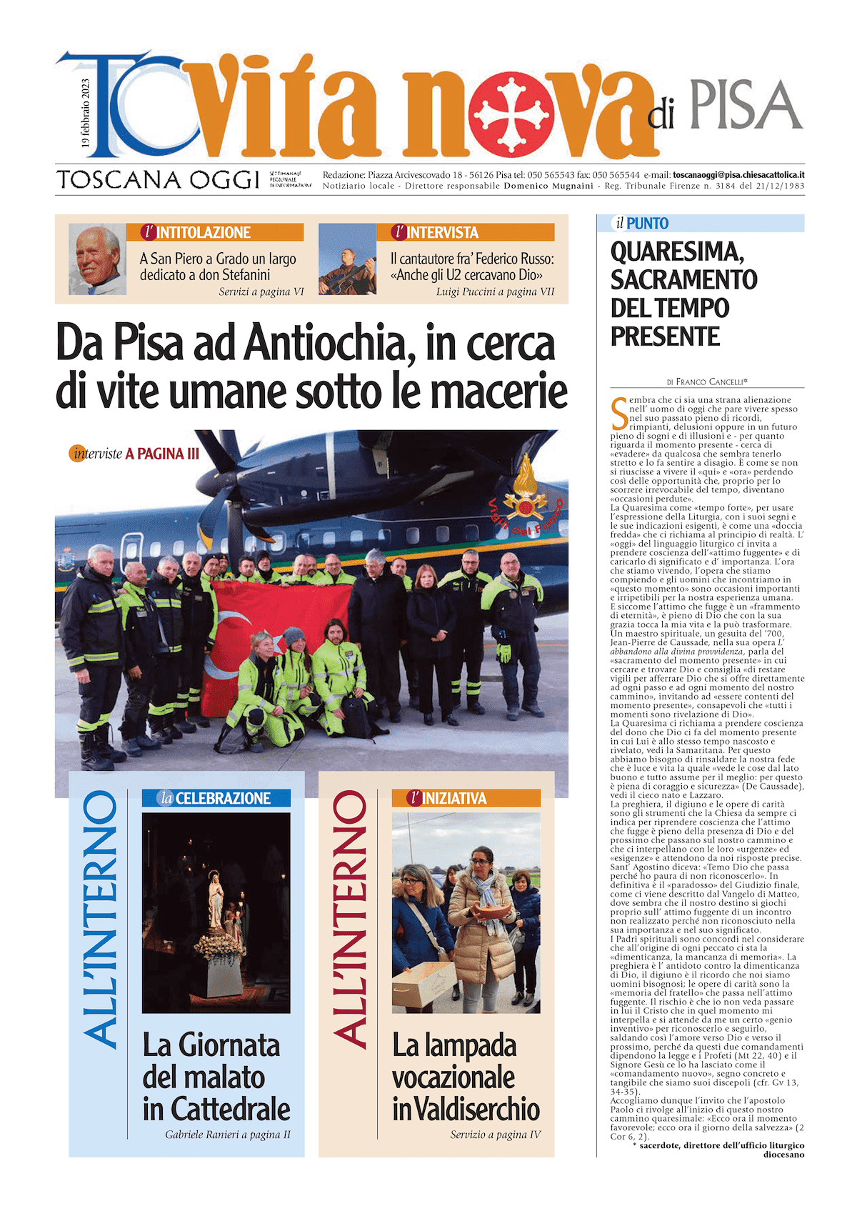È in arrivo nelle case degli abbonati e nelle chiese della diocesi il numero del settimanale Toscana Oggi datato domenica 19 febbraio 2023. Qui trovate la prima pagina del dorso diocesano, Vita Nova.