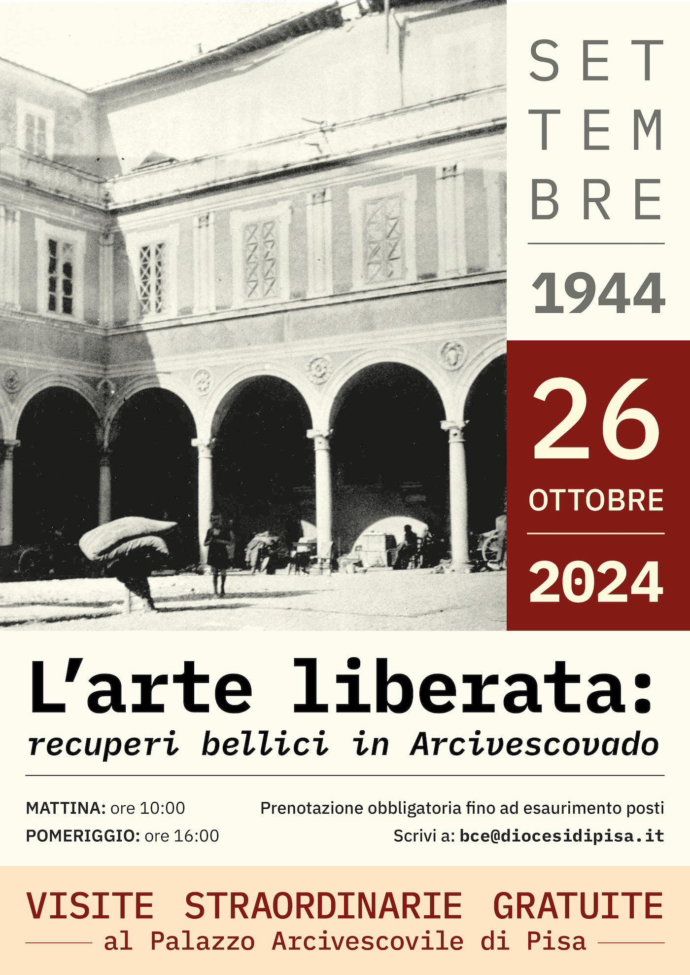 In occasione dell’80° anniversario della Liberazione (1944-2024), l’Arcidiocesi di Pisa organizza l’apertura straordinaria al pubblico del palazzo arcivescovile per due visite gratuite nella giornata di sabato 26 ottobre 2024.