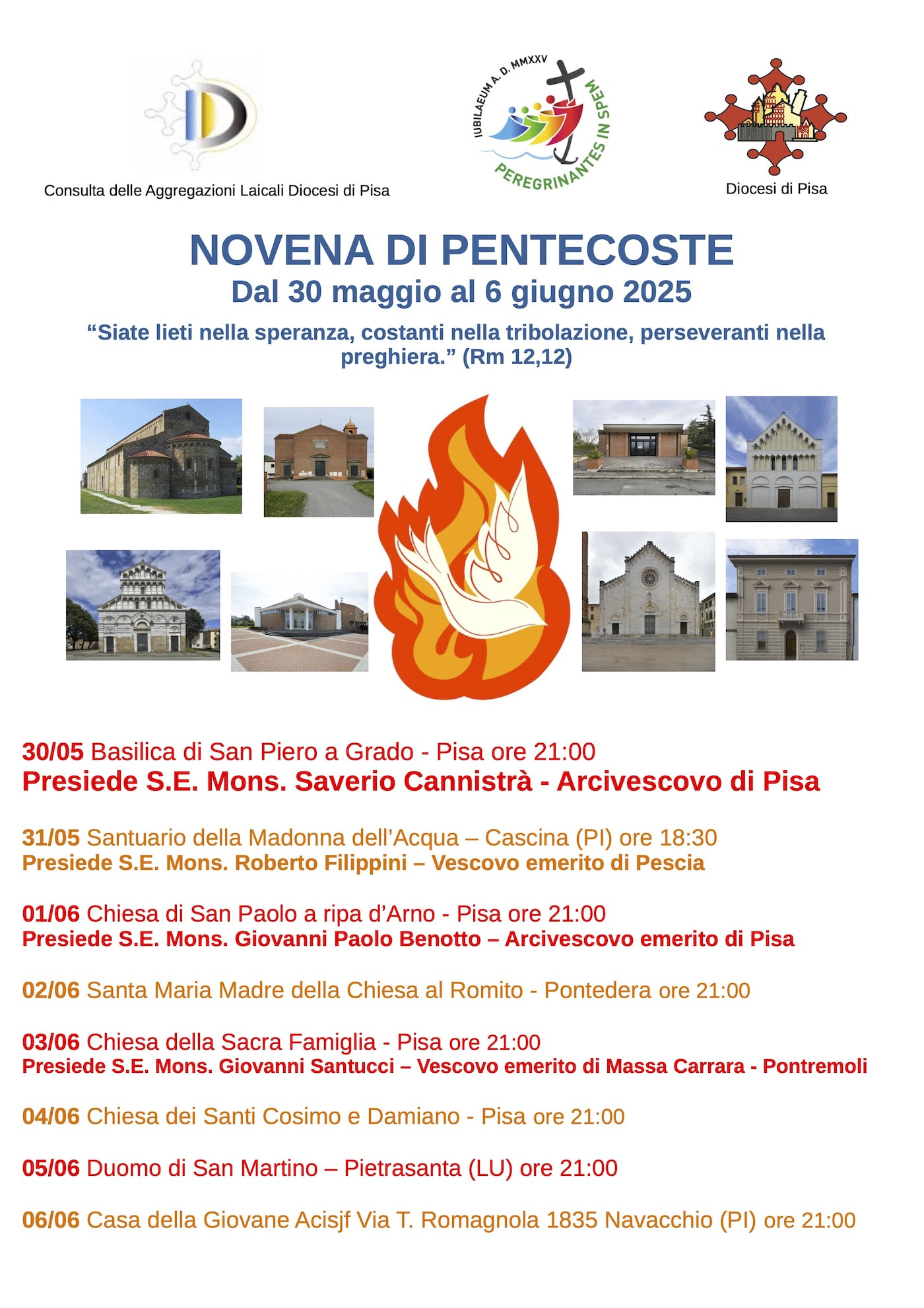 - 02/06 Santa Maria Madre della Chiesa al Romito – Pontedera ore 21:00 03/06 Chiesa della Sacra Famiglia – Pisa ore 21:00
