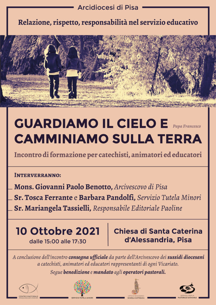 Domenica 10 Ottobre, dalle 15 alle 17.30, nella Chiesa di S. Caterina d'Alessandria a Pisa siete inviati a partecipare ad un importante incontro formativo dal titolo «Guardiamo il cielo e camminiamo sulla terra». Interverranno: l'Arcivescovo, Sr. Tosca Ferrante e la…
