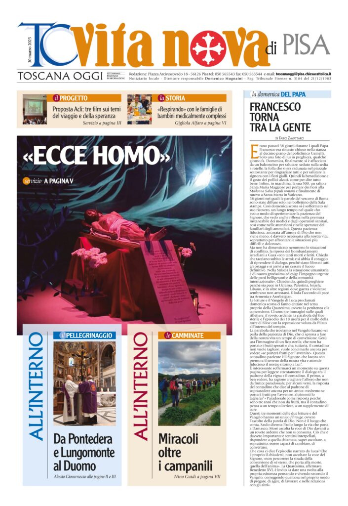 IN ARRIVO IL NUMERO DI PASQUA DI TOSCANA OGGI/VITA NOVAÈ in arrivo nelle case degli abbonati e nelle parrocchie il numero di Toscana Oggi datato domenica 20 aprile 2025. Qui trovate la prima pagina del dorso diocesano. Per ricevere a…