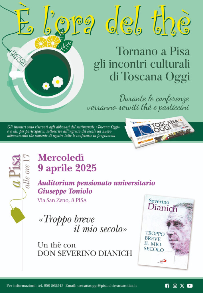 AI «THE’ DI TOSCANA OGGI» IL LIBRO DI DON SEVERINO DIANICH «TROPPO BREVE IL MIO SECOLO» Appuntamento mercoledì 9 aprile alle ore 17 al pensionato universitario Toniolo